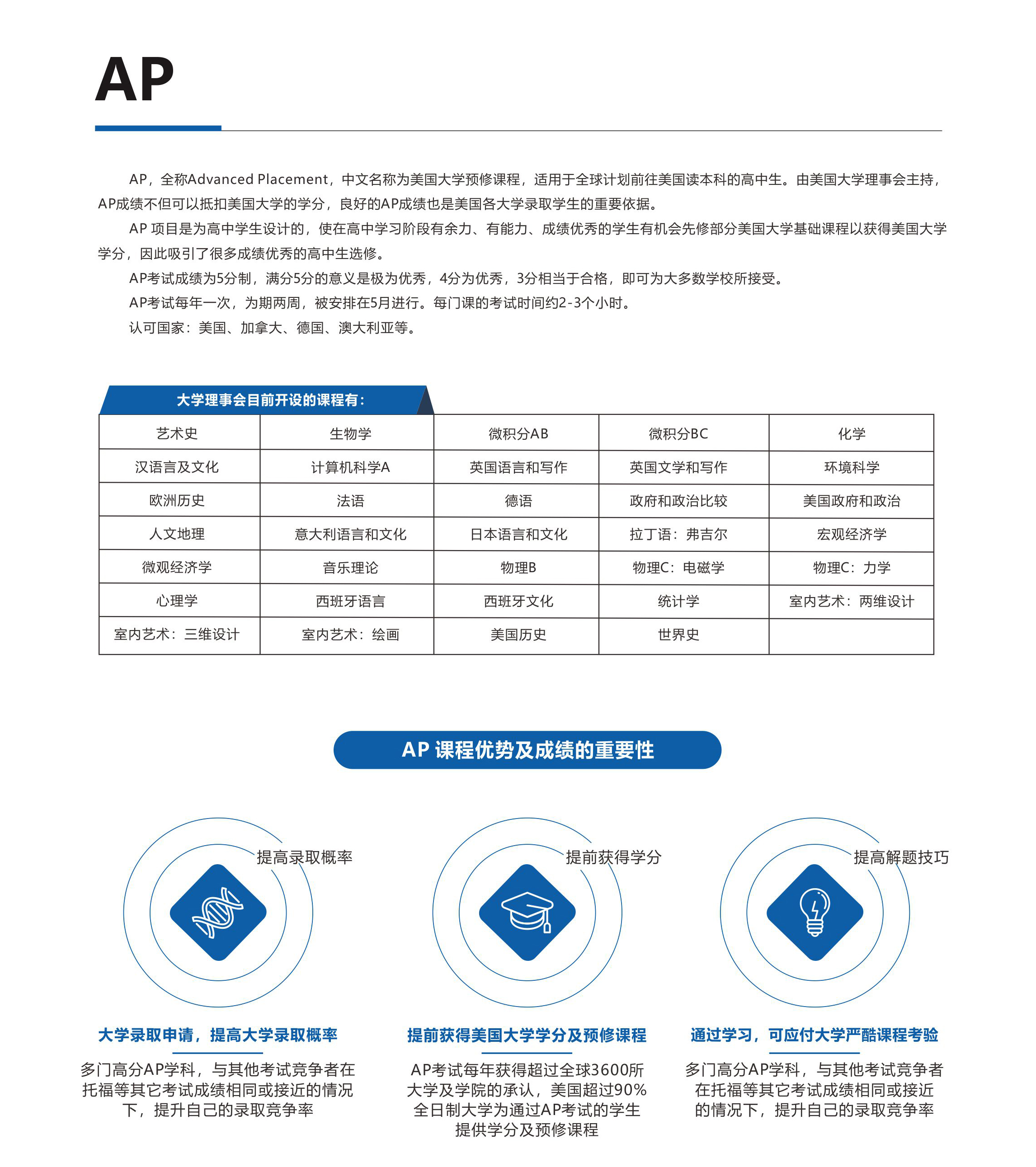 班型 AP VIP小班 适合想要提前接触大学课程,完成美国大学的学分课程及考试的学生