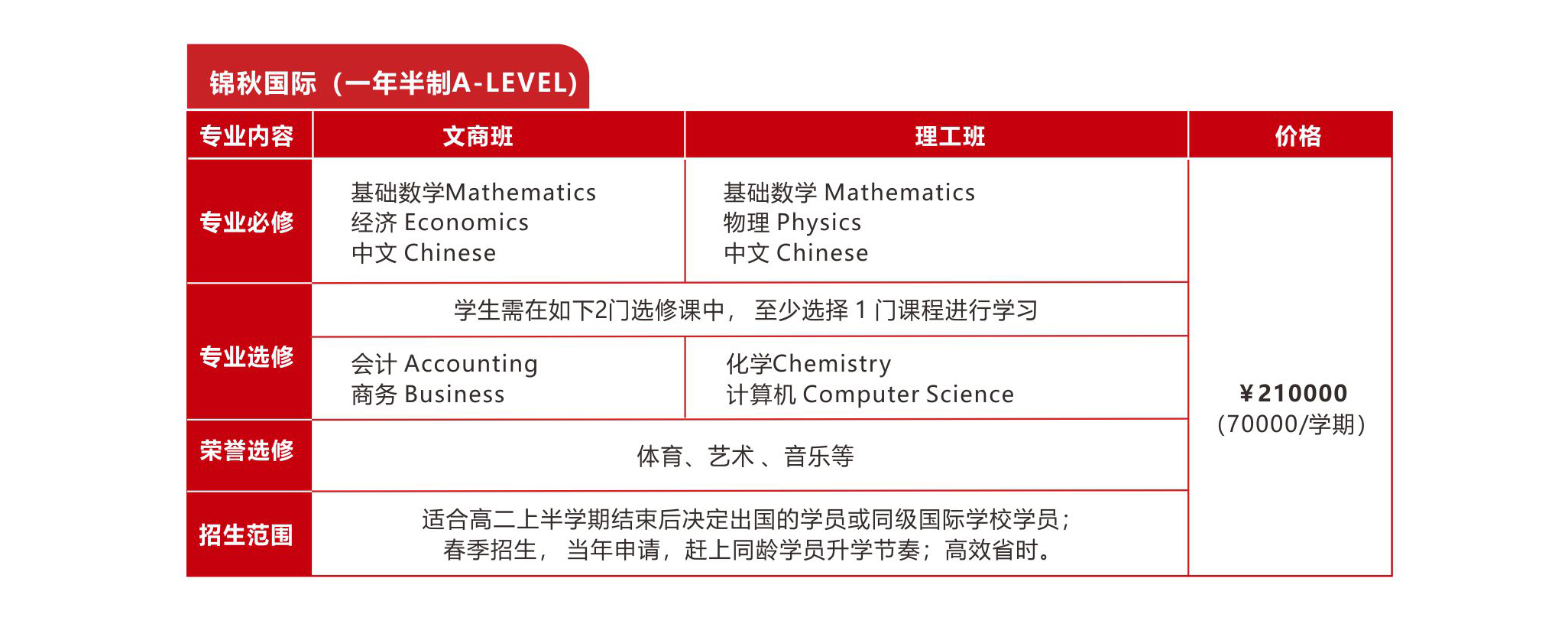 班型 锦秋国际 适合高二上半学期结束后决定出国的学员或同级国际学校学员;春季招生, 当年申请