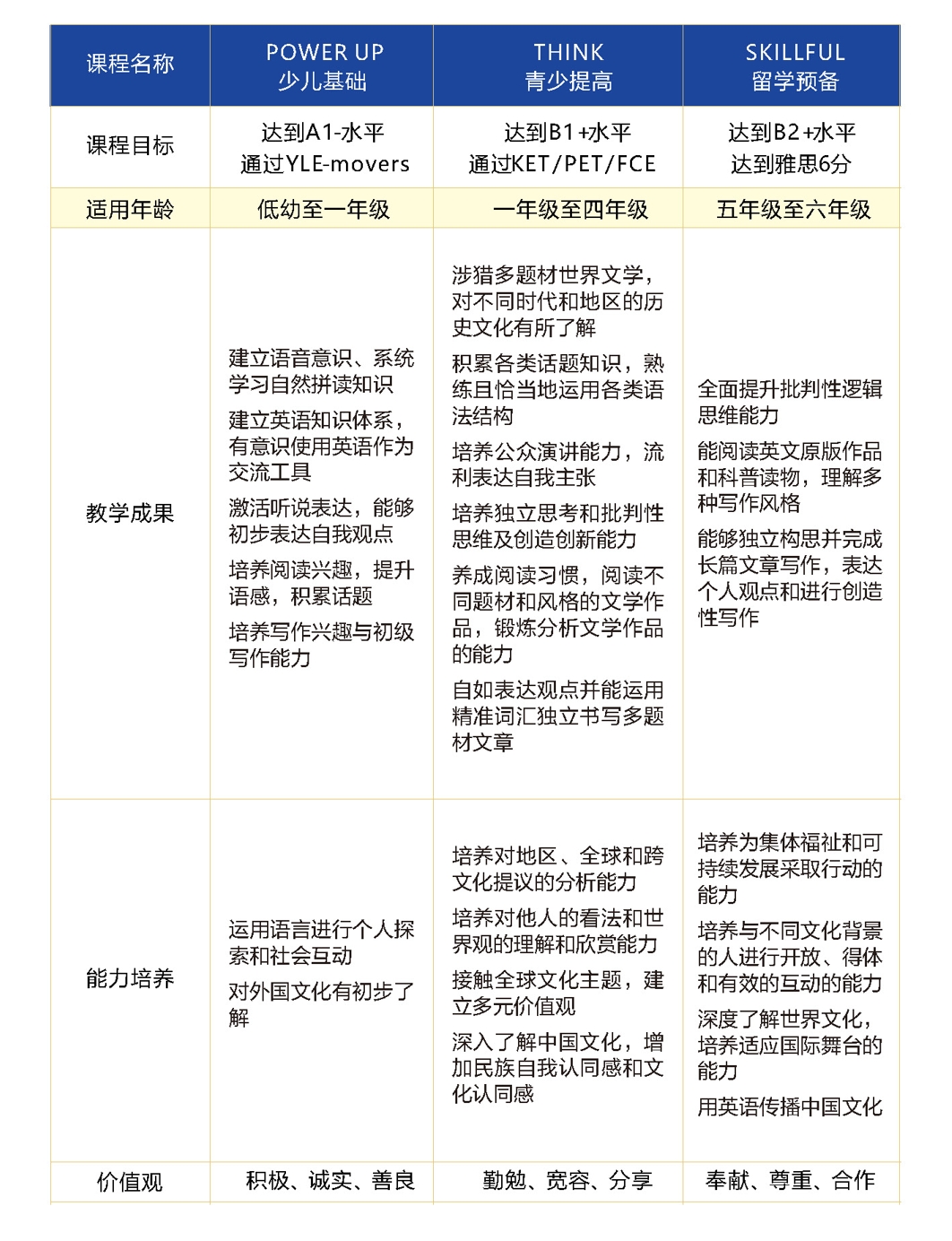 班型 POWER UP VIP小班 在小学解决英语,二年级通过KET考试,四年级通过PET考试,六年级达到雅思6分