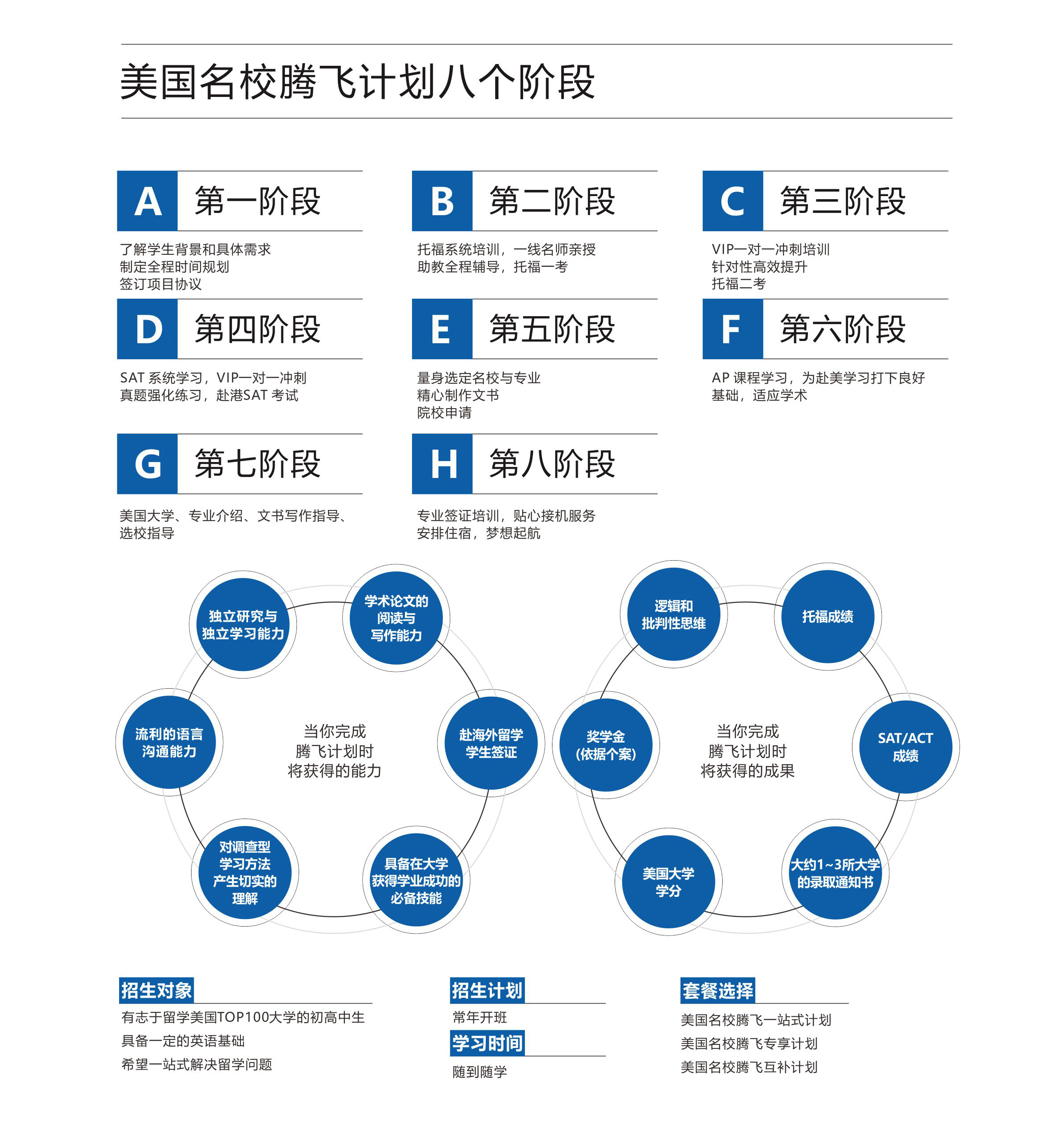 班型 腾飞专享计划 可选择美、加、英、澳/新西兰、中国香港/中国澳门/新加坡,任意两组英语授课国家/地区8所院校