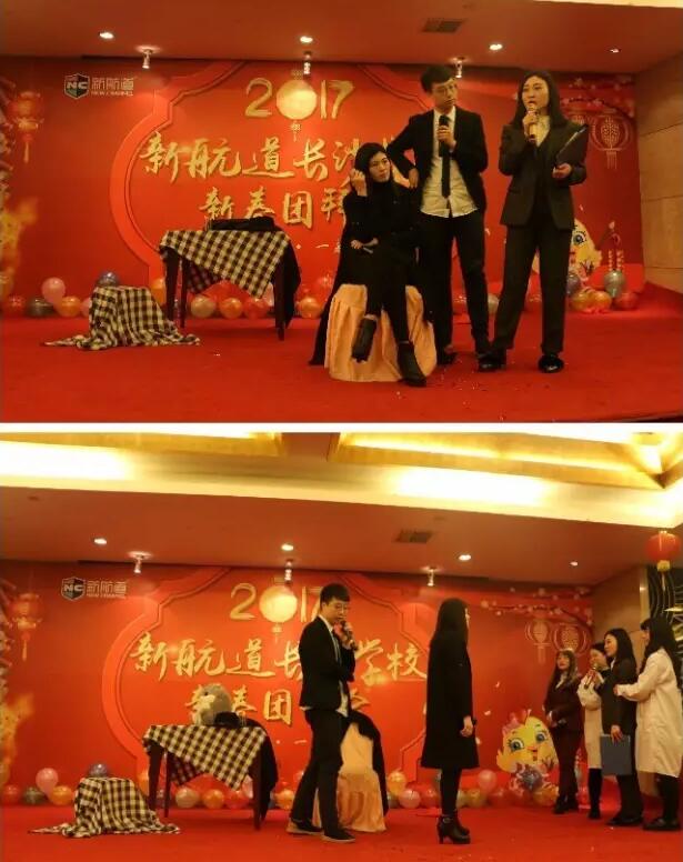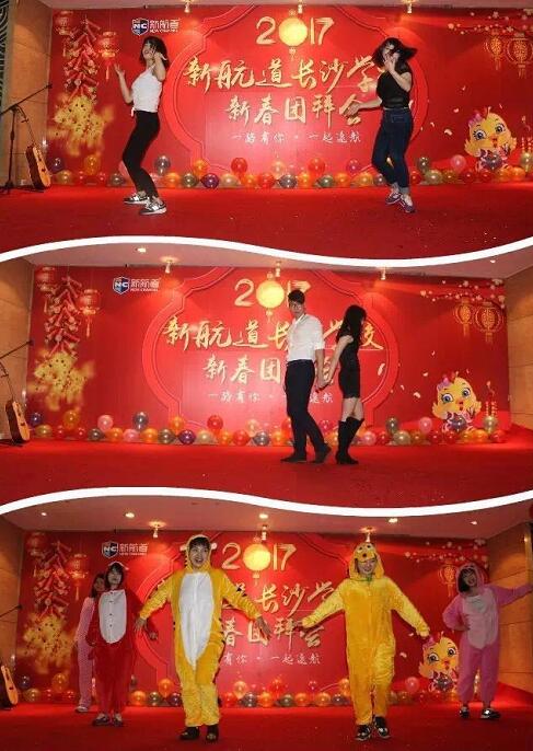 下午4:30,长沙新航道新春年会在教学管理部——基础组老师带来的《day by day 和 up and up》的开场舞表演中拉开序幕。随后主持人小艾、佘骁闪亮登台,介绍现场重量级嘉宾并欢迎现场所有嘉宾的到来。