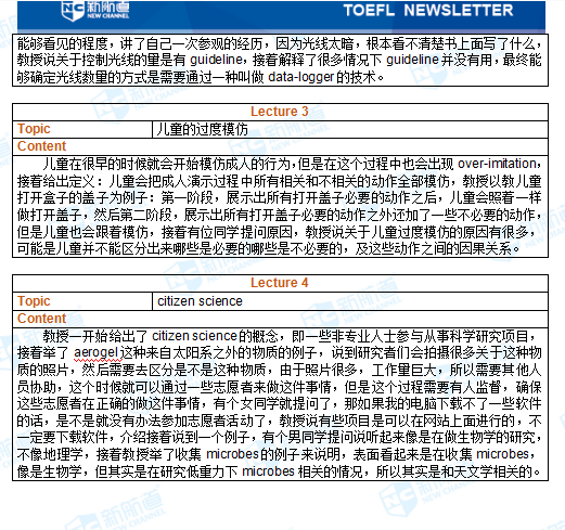 综上回顾,从内容上分析5月6日的托福听力,对话部分仍然主要是office hour和service encounter。学科讲座部分涉及的学科包括:生物学、艺术学、地质学及历史学。都属于常考学科。对于5月13日的听力考试,大家首要的备考重点是生物学、艺术学、环境科学、历史、考古、地质、天文学学科词汇、文章结构和常设考点,其次是哲学、心理学、建筑学、化学、语言学、人类学等学科讲座。备考的过程应始终以TPO1-34为精听跟读听读的主要材料,极尽可能的利用TPO,扩展各学科听力词汇,熟悉各学科文章的出题规律。同时,适当选择非美音的材料进行泛听,对考试中可能出现的新口音试题进行适度的准备。最后,提醒大家在考试之前一定要熟悉一下经典加试,并在考试过程中认真对待加试题。